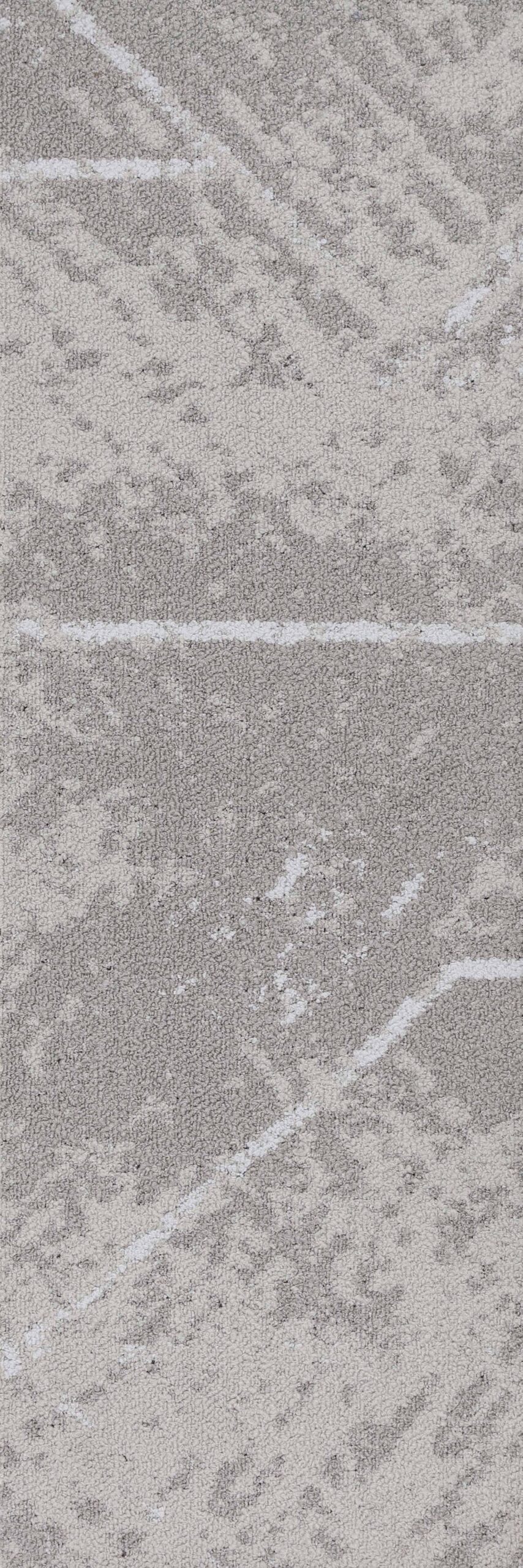 Nylon plank carpet tiles in ColourPoint construction on PVC backing in geometric abstract motif.