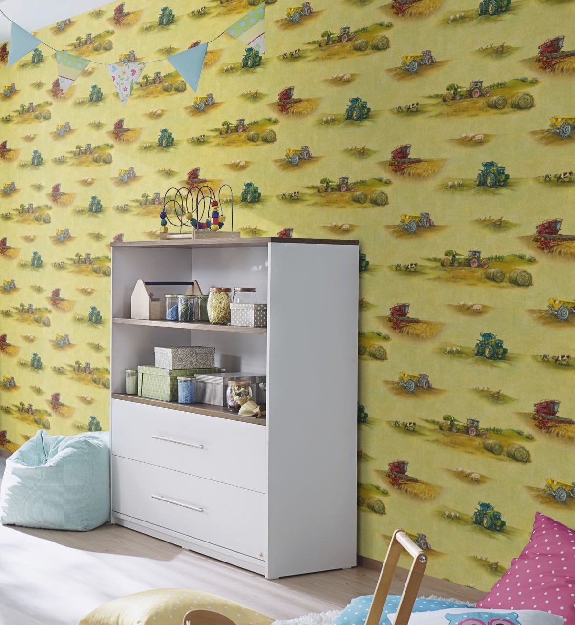 On your marks, set, get wallpapering! This Kids & Teen Wallpaper collection allows kids and teens to fly to distant galaxies, invite unicorns home with them or conjure up graffiti on their walls. Finally, even the youngest members of your family have their very own kingdom. While lions, giraffes and llamas might visit the little ones, older children can go exploring in the world’s major cities. Fresh ice cream colours appear against whitewashed brick walls, while the images might look painted or printed at high resolution. Individual? Absolutely!